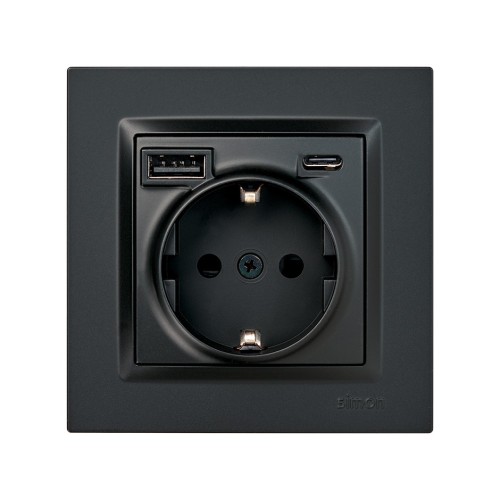 Simon ENCHUFE SCHUKO CON USB A+C NEGRO SIMON 10