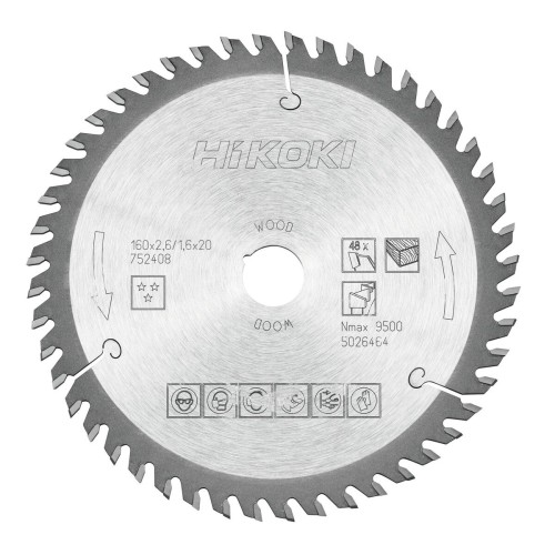HIKOKI Hoja de sierra TCT madera 160x20/16xZ48 dientes alternos